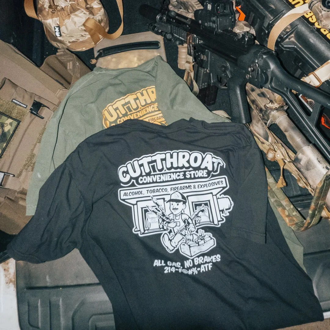 Cutthroat Convenience Store on the left chest, full logo spread across the back.